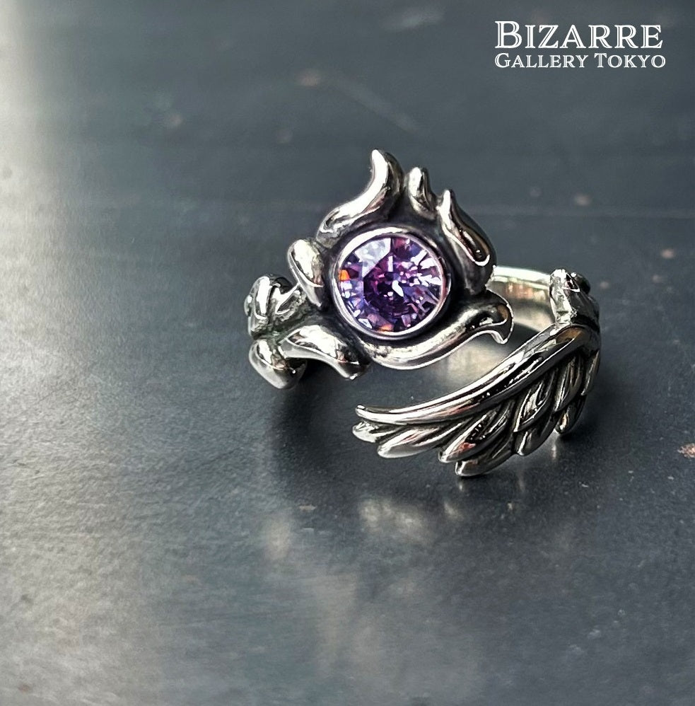 人気のミスティックエンジェルリングにサイズも充実し、新色が登場。幸福を呼ぶとされる優美で幻想的な天使の翼をモチーフに、透明感のあるラベンダーカラーのキュービックジルコニアをセットし、聡明な天使のイメージのリングに仕上げました。また、ミスティックエンジェルリングよりも、石をキュービックジルコニアにした事で価格もお手頃に。そして、フリーサイズなので、着ける指も自由自在。着ける向きによって表情が変わるのもまた魅力です。また、後々サイズを変更したい時も、他のリングよりも簡単にサイズ変更が可能です。